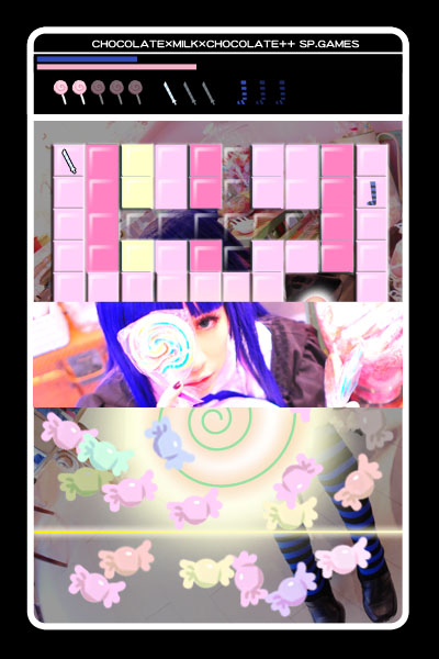 内容は2010年冬のアニメ《パンティ&ストッキングwithガーターベルト》のストッキングのコスプレ写真集です。全四種類の衣装で、それぞれ別々のシナリオで撮影をしました。そして今回の《CHOCOLATE×MILK×CHOCOLATE++》について、前作のバージョンアップで、新しいシナリオを追加した上に、壁紙、動画、電子書籍などお得な内容満載!デスプレイシステムも作り直しをしました。